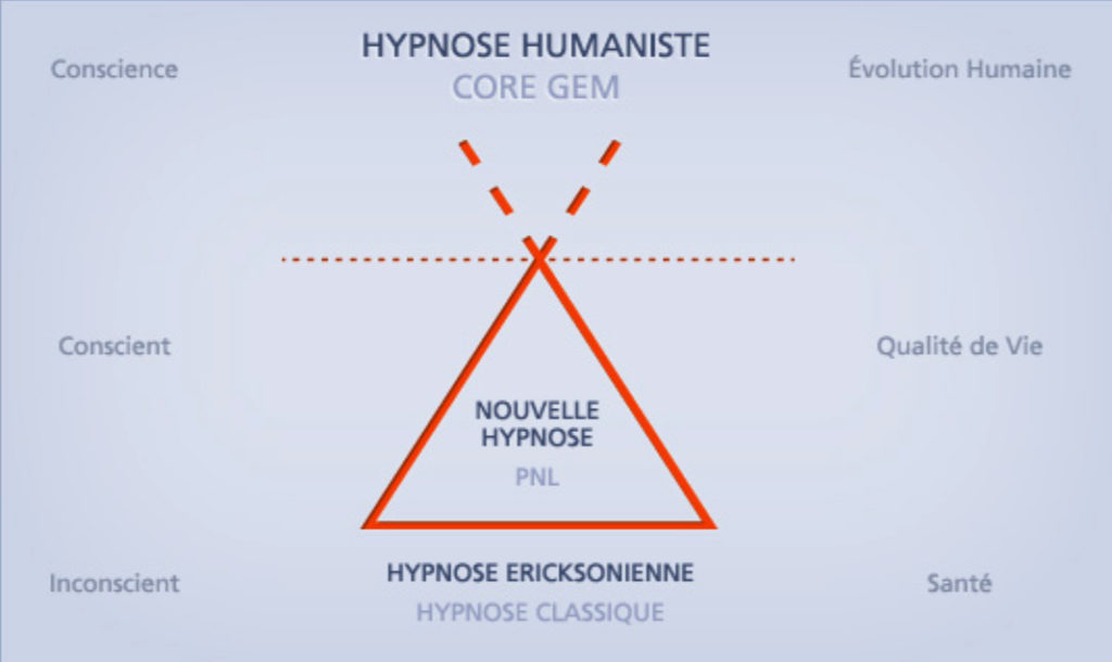 - Maître praticien : passage à une professionnalisation complète afin d’exercer en tant qu’hypnothérapeute certifié en Hypnose Humaniste.